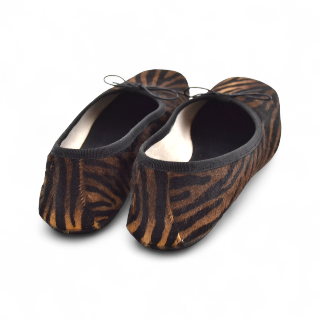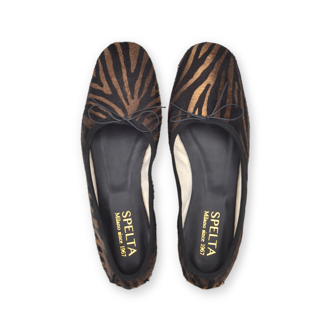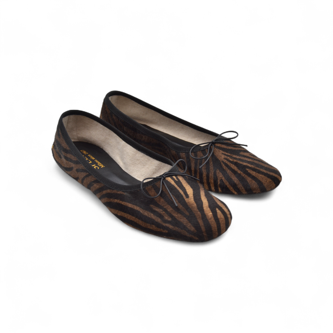 Nella pregiata versione in cavallino, caratterizzata da texture morbide e naturali che rendono ogni paio unico. Le leggere irregolarità del manto donano profondità e personalità, trasformando la ballerina in un dettaglio ricercato capace di elevare anche i look più essenziali. Un tocco materico, elegante e ricco di carattere.