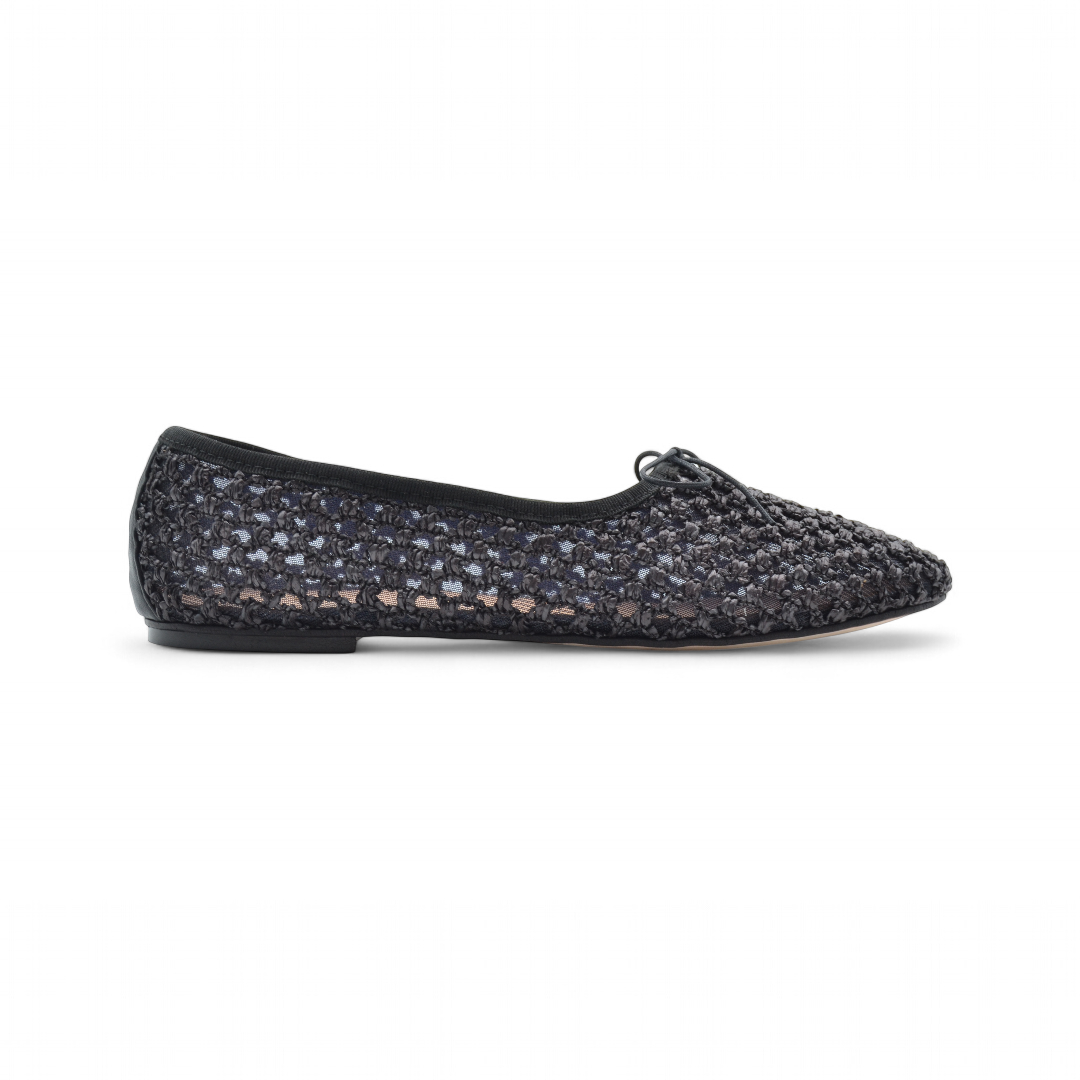 Realizzata in crochet su rete trasparente di color tortora, questa ballerina è leggera e fresca, ideale per le tue giornate estive.