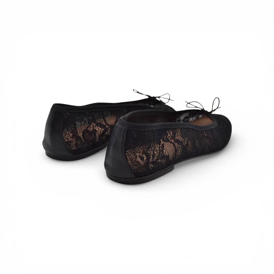 Nicole is handmade using only fine Italian leathers and fabrics and produced with the traditional “sewing and turning” technique, a variation of the Goodyear stitching method where the upper is stitched to the sole in reverse and then turned up by hand. This guarantees extreme softness and flexibility. The gros grain finishing protects the colored lace which can be used to optimize the fit of the ballerina on any foot.